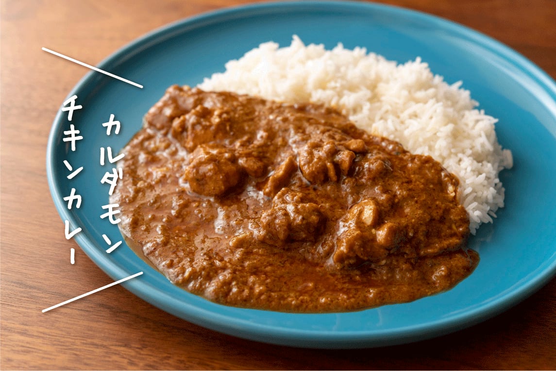 しっかりと炒めた玉ねぎに、数種の野菜をピューレにして足すことで天然の旨味と甘さを加えています。象徴的なカルダモンをはじめ、使うスパイスは20種!